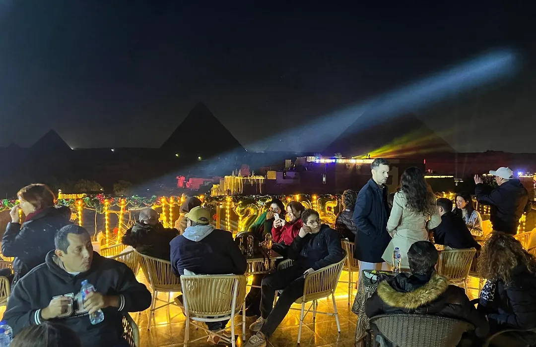 El restaurante Elhadaba está al lado del hotel Majestic Pyramids Kafret el-Gabal, a unos 500 metros.